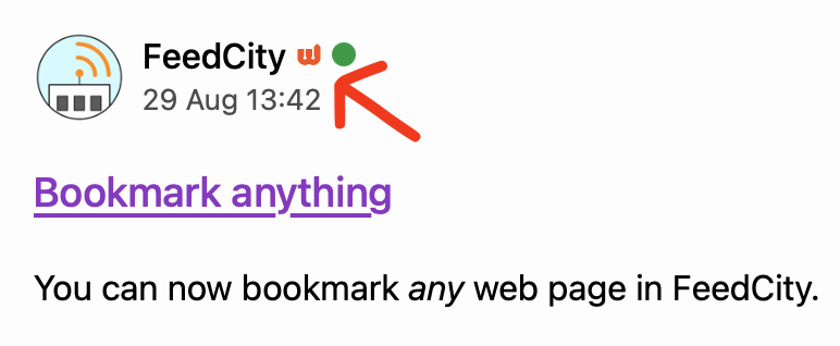 Just like with bookmarks, you can also “like” any web page. There’s a new bookmarklet available on the “Add” page you can copy to your browser’s toolbar. Tap/click this when you’re on any website, and it will get added to your “Likes”. If the site supports Webmentions, FeedCity will also sent one out.